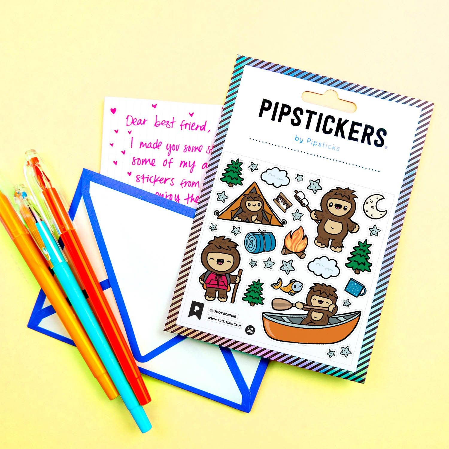 PipStickers are the PERFECT gift for the sticker lover in your life - even if it's you! These unique PVC designs with holographic silver foil accents come on a clear backing and cannot be found anywhere else.Includes one 4'' x 4'' sheet of Bigfoot Bonfire PipStickers and includes the Pipsticks manifesto.