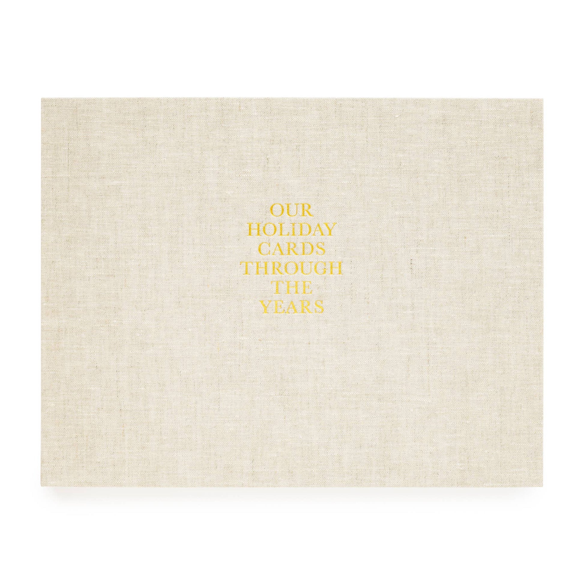 This elegant holiday card book creates a treasured keepsake book that preserves your family's cherished Christmas memories in sophisticated fabric with luxurious gold detailing.