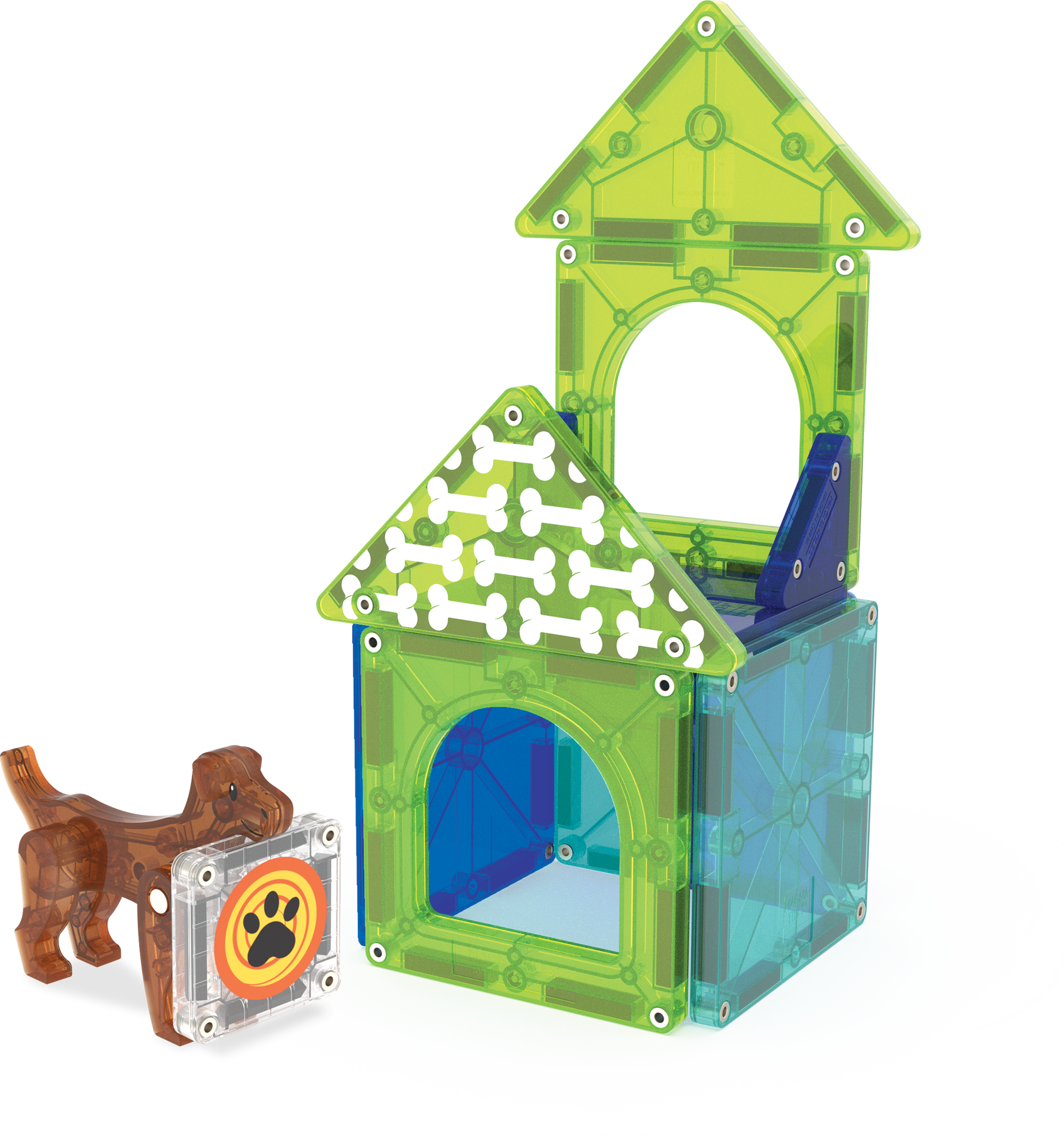Dog House 13-Piece Set: Every family dog deserves a MAGNA-TILES® house to call their own! Whether he’s playing in the yard or curling up after a long day of fun, this lovable dog is ready for every adventure your little builder imagines. But the fun doesn’t stop there! With microMAGS pieces, your budding architect can add creative details and decorations to realize the Dog House’s full pet-tential. Whether it's a bright Roof tile, a playful Fence, or the cutest little bowl for their furry friend, these microMAGS inspire big ideas and bring each build to life.Perfect on its own or paired with the MAGNA-TILES® Cat Tree or Hamster Ball sets for a fully interactive pet-themed world. Combine it with the MAGNA-TILES®Playhouse for even bigger builds and more imaginative play. Packed with opportunities to spark creativity, encourage storytelling, and explore the joy of design, the Dog House Set is paws-itively packed with possibilities!